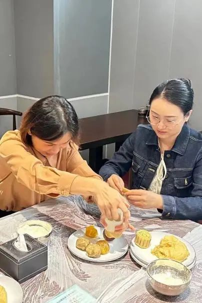 晶瑩剔透的餅皮、沁甜馥郁的餡料、精致的雕花模具,在專業(yè)老師的指導(dǎo)下,變成一個個美味的月餅。
