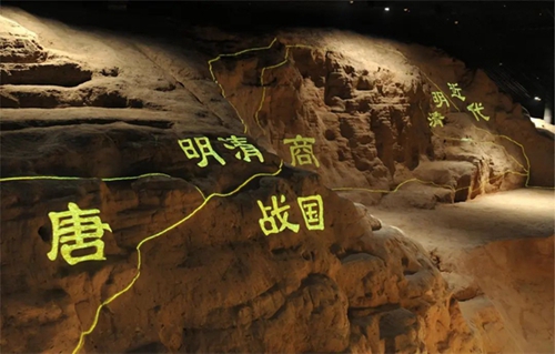 第二展廳部分場景復原運用了三維立體掃描、建模和 3D 打印的新技術(shù),展示鄭州商都發(fā)現(xiàn)的重要遺跡,如紫荊山路南城垣斷面展示,夕陽樓人骨祭祀坑、向陽回族食品廠青銅器窖藏坑展示等。三維立體掃描和3D打印的技術(shù)運用,充分還原遺跡和考古發(fā)掘現(xiàn)場,最大限度保護文物和文化遺產(chǎn),新技術(shù)的運用也減少了展廳施工的難度,節(jié)省資源和成本,視覺感官上無差別的遺跡展示,帶給觀眾親臨現(xiàn)場的真實感和體驗感。