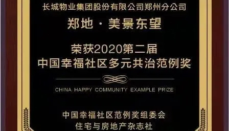 鄭地·美景東望項(xiàng)目榮獲“2020第二屆中國(guó)幸福社區(qū)多元共治范例獎(jiǎng)”。